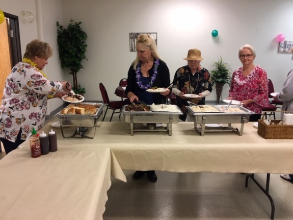 with a taste of the Islands. A wonderful time was had by all with great Hawaiian food and, a chance to don their Hawaiian clothes for one last time this summer. The Pulled Pork and Huli Huli Teriyaki Chicken was especially good!